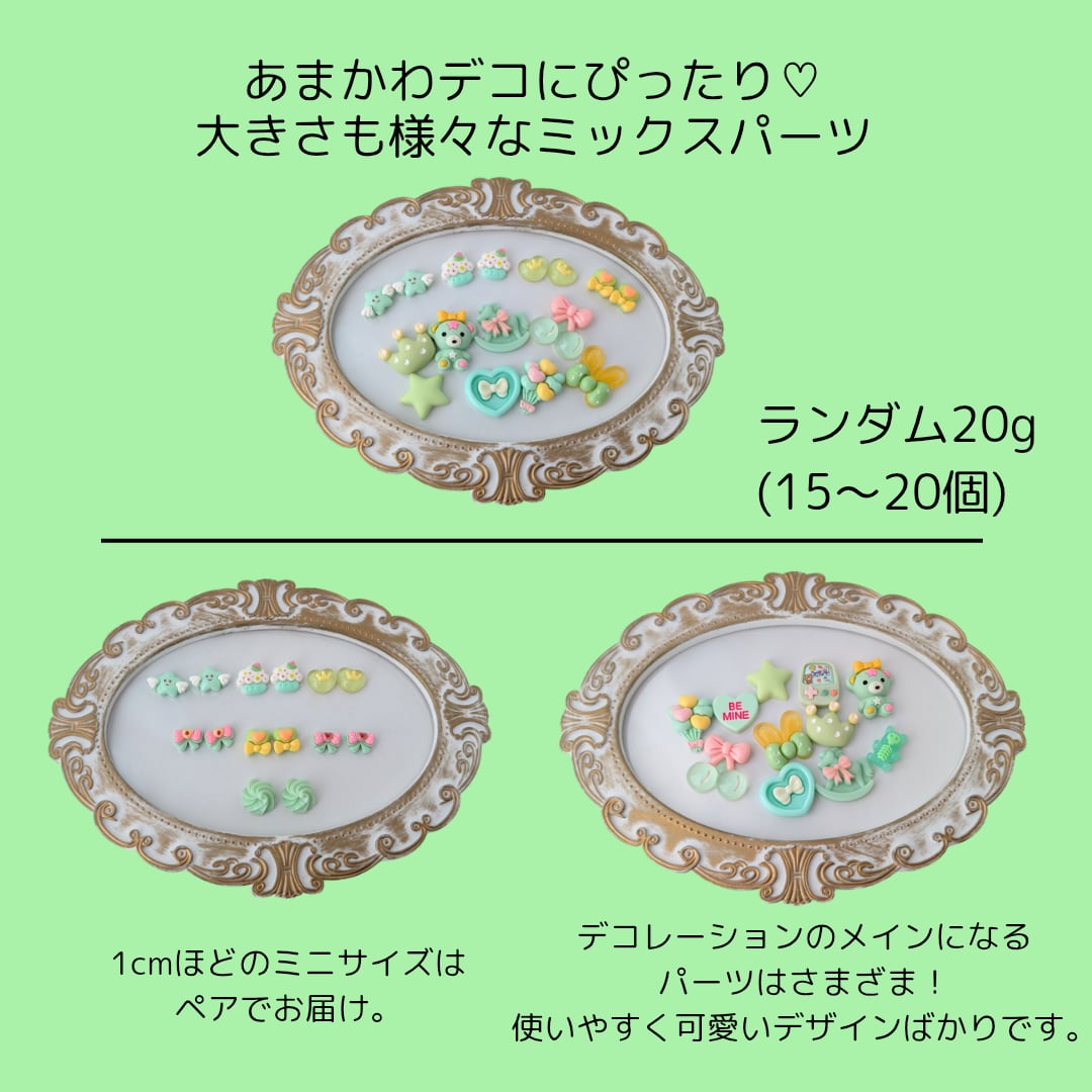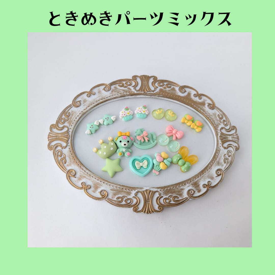 【グリーン】ときめきパーツミックス ホイップデコ トレカデコ レジンデコ パーツ パーツ素材