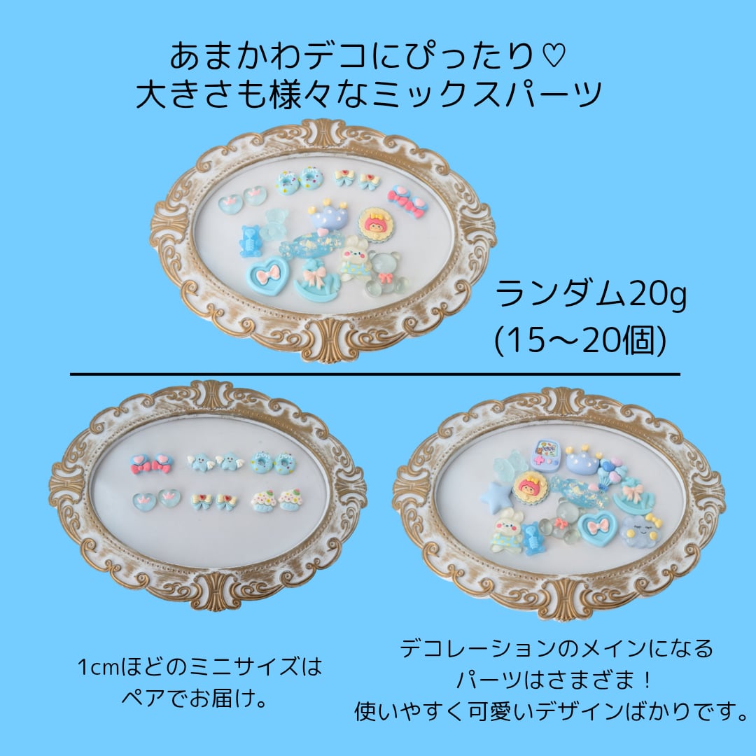【ブルー】ときめきパーツミックス ホイップデコ トレカデコ レジンデコ パーツ パーツ素材